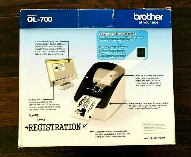 Offering versatility, convenience and Microsoft integration, the QL-700 delivers totally hassle-free address (and other) label printing. 'P-Touch Editor Lite' is pre-loaded to the printer itself so there's no software installation required for PC or Mac. Brother QL 700 label printer reviewThis printer can be purchased off Amazon Link Below:http://amzn.to/2nNndtB (affiliate)If you're looking for a printer to p... • The software contained on the CD-ROM is meant for use with this machine only. See the License on the CD-ROM for details. This software may be installed on multiple computers for use in an office, etc. Start Here 1 Unpack the QL-700 and check the components. Check that the package contains the following before using the printer. Brother Genuine DK-2211 Continuous Length Black on White Film Tape for Brother QL Label Printers, 1.1" x 50' (29mm x 15.2M), 1 Roll per Box, DK2211 4.6 out of 5 stars 61 $18.81 $ 18 . 81 $26.12 $26.12