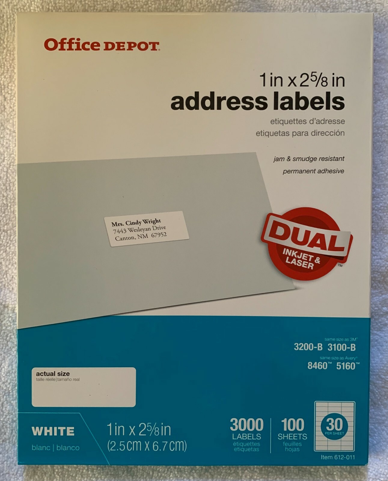 Office depot address labels white 1 x 2 5 8 3 000 pk