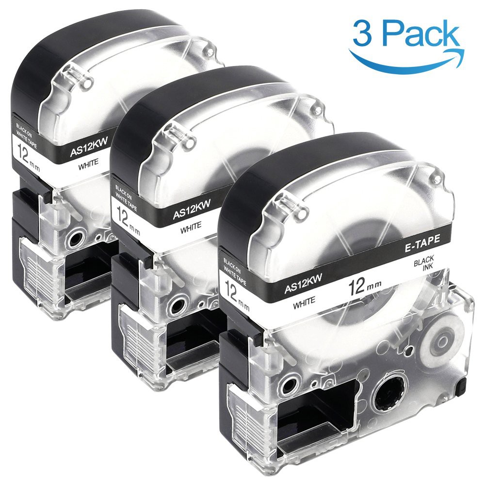 3pk ss12kw label tape label pita compatible for epson label maker tape refill balck on white 12mm