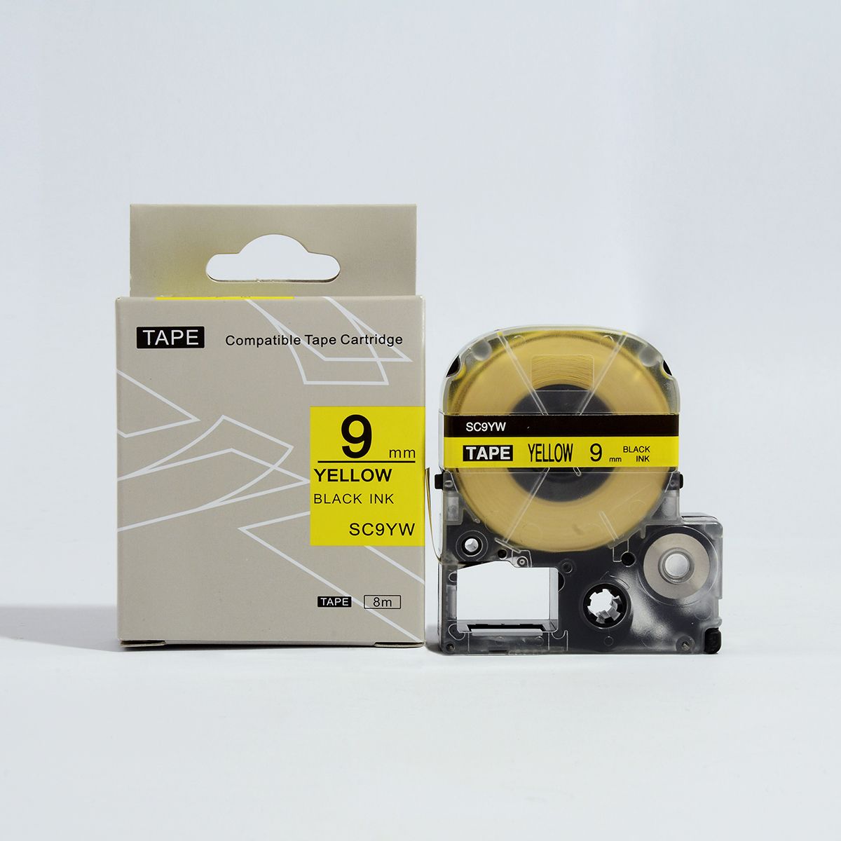 Compatible label tape replacement for epson lk 3ybw label maker tape refill cartridge cassette lc 3ybw9 lc 3ybw sc9yw lk 3ybw black on yellow t 9mm x