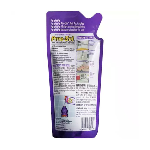 No.1 selling pine scent. Removes tough grease and dirt. Deodorizes and has a clean, fresh scent. Contains no phosphorus. Questions or comments? Please visit www.pine-sol or call 1-800-227-1860. For more product information, visit www.smartlabel . how2recycle.info. Made in USA of global components. Warning. Contains pine oil.