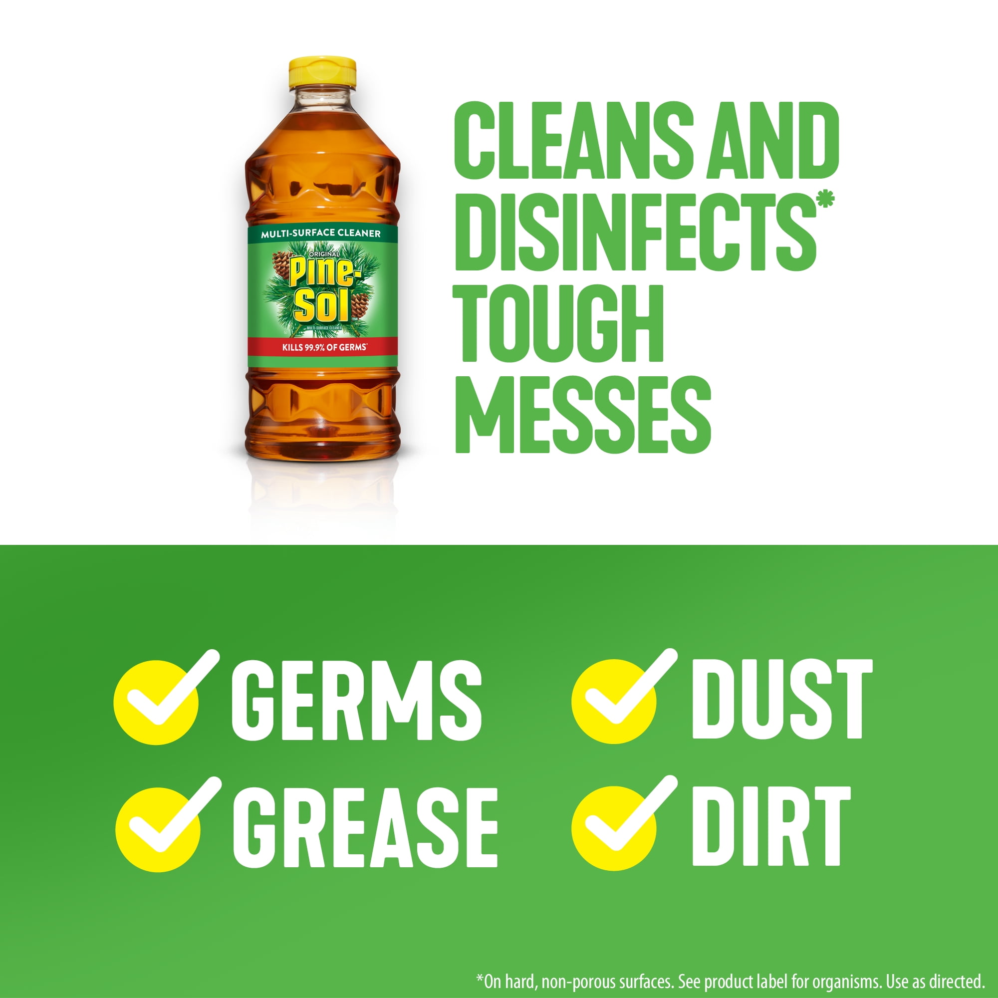 Pine-Sol All Purpose Cleaner cleans and disinfects most household surfaces with the long lasting Original Pine scent. - DISINFECTANT CLEANER: The ideal solution to any mess, Pine-Sol cleans and disinfects, killing 99.9% of germs including the COVID-19 virus*