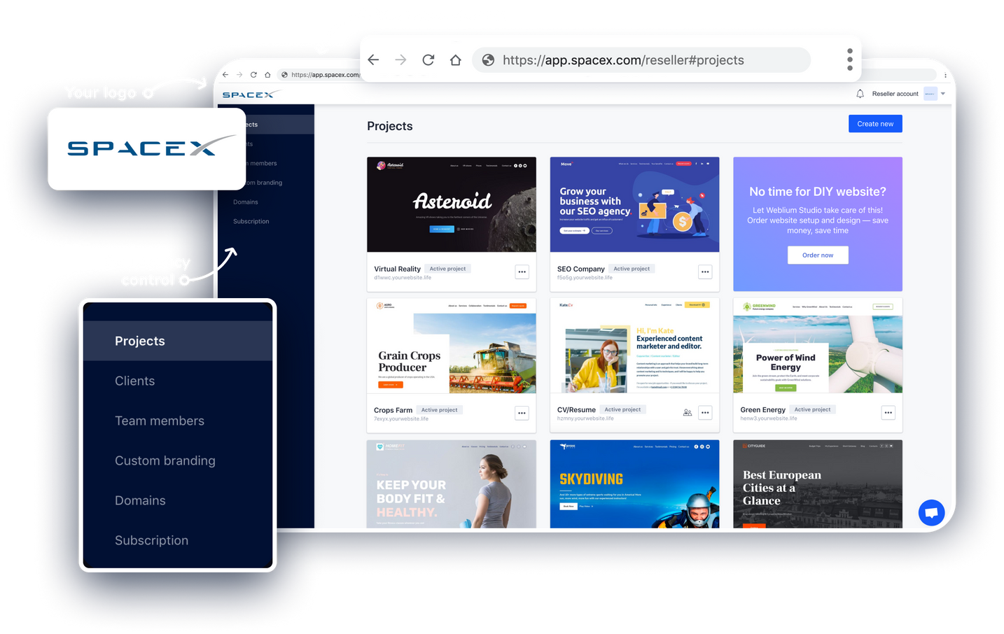 Our website builder white label option includes built-in functionality for all your user's website needs, from ecommerce to blogging, portfolios to wedding sites, and everything in between. ... Great for Web-designers, hosting-companies, resellers, white-labels etc. ...
