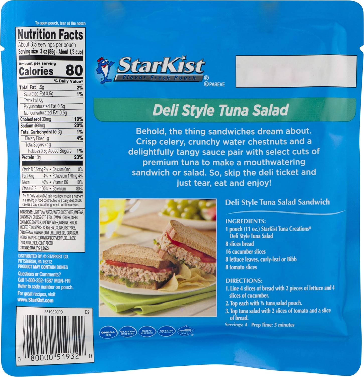 Starkist Tuna Creations Original Deli Style Tuna Salad 11 Oz Pouch Pack Of 12 Amazon Com Grocery Gourmet Food