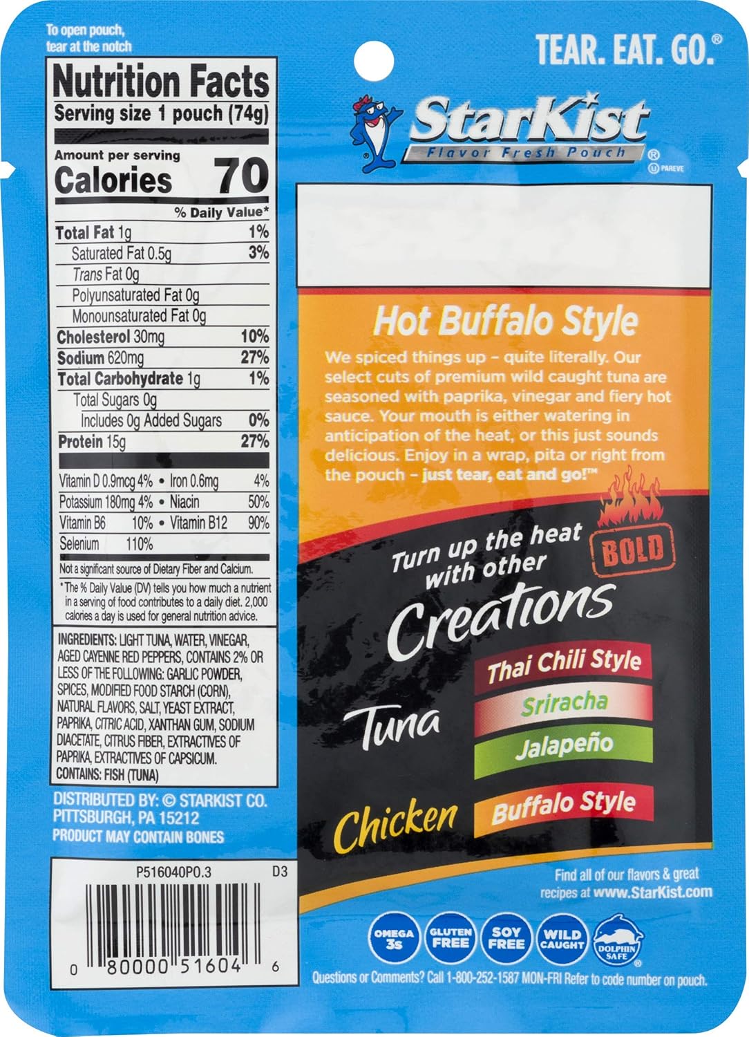 Amazon Com Starkist Tuna Creations Bold Hot Buffalo Style 2 6 Oz Pouch Pack Of 24 Packaging May Vary Grocery Gourmet Food