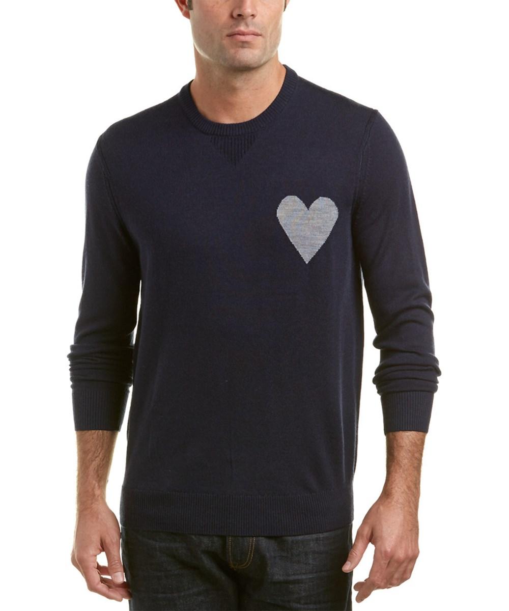 Michael Bastian Gray Label Heart On Wool Blend Crewneck Sweater In Navy Modesens