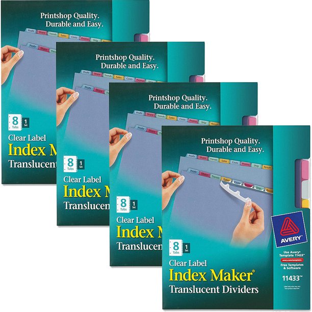 4 Pack Avery Index Maker Print Apply Clear Label Plastic Dividers 8 Tab Letter Ave11433 Walmart Com Walmart Com