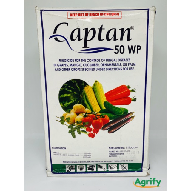 A Fungicide For Plant Disease Control Captan 50 Wettable Powder is a microfine wettable powder for use in water as a spray for the control of certain fungus diseases of fruit and ornamental crops, and as a soil treatment for the control of certain seed rots and damping-off diseases