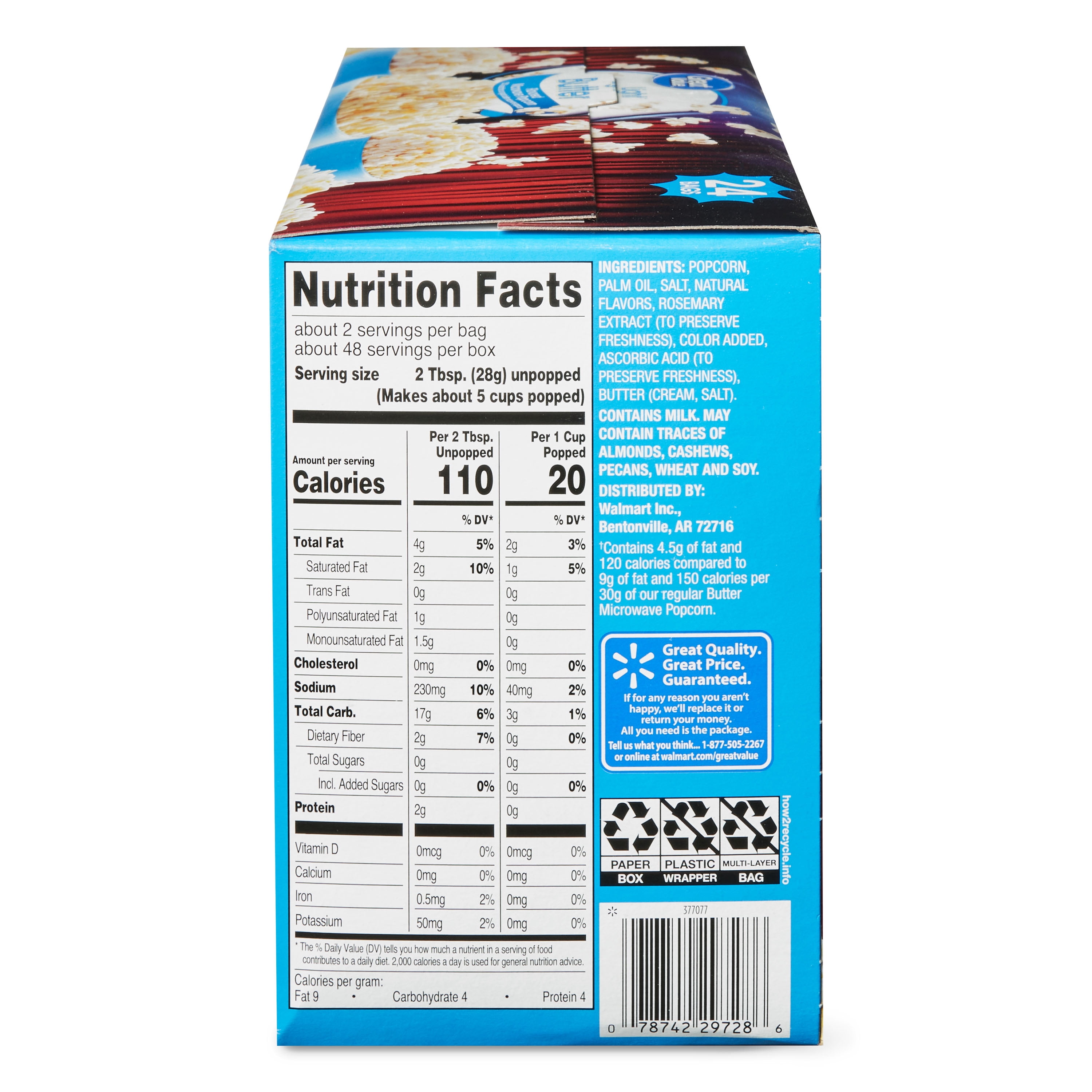 Great Value Light Butter Microwave Popcorn 24 Count Walmart Com Walmart Com