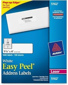 Amazon Com 5162 Avery Easy Peel Address Label 1 33 Width X 4 Length 1400 Box Rectangle 14 Sheet Laser White Office Products