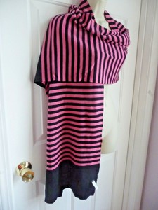 J Crew Black Label Scarf Pashmina 100 Wool Black And Pink Striped Huge Ebay