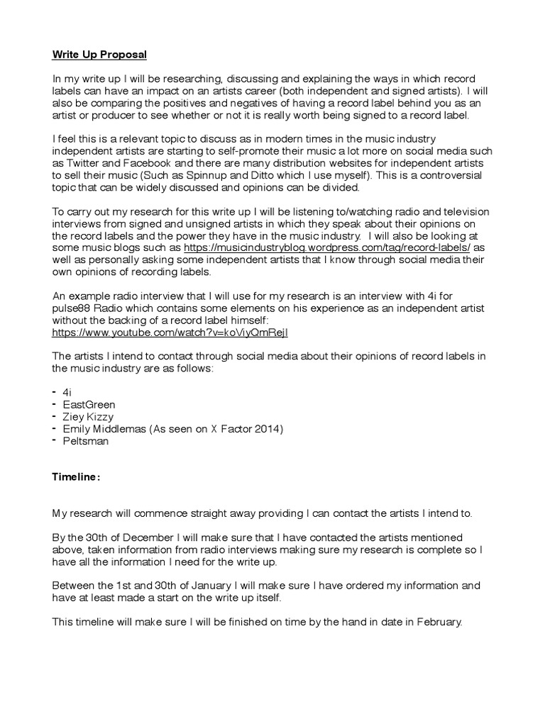 Record Label Write Up Proposal