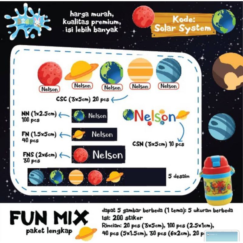 Stiker Label Nama Solar System Isi 200 Pcs Waterproof Shopee Indonesia