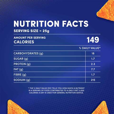Nutrition label for doritos. 12 chips = 28g 5 DORITOS ® Nacho Cheese