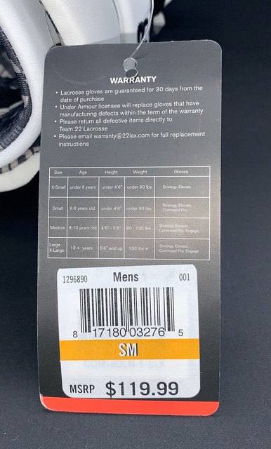 Under Armour Command Pro Lacrosse Gloves 10 Black 1296890 001 Men S Small