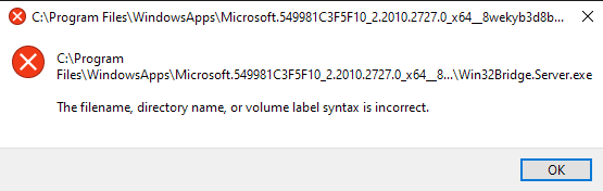 0x8007007b Filename Directory Name Or Volume Label Syntax
