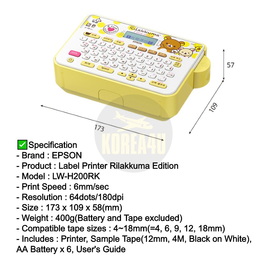 Epson Rilakkuma Portable Label Printer Maker Lw H200rk