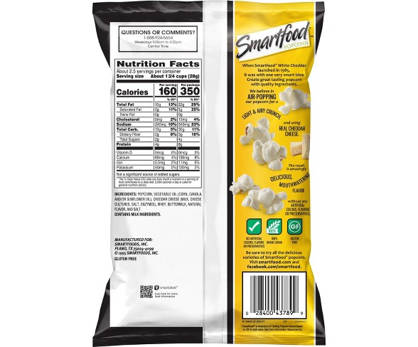 40 Smartfood White Cheddar Popcorn Nutrition Label