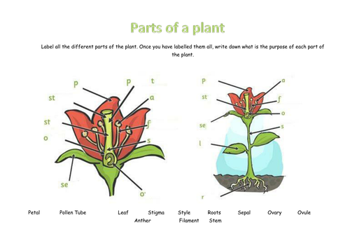 Parts of a plant diagram to label