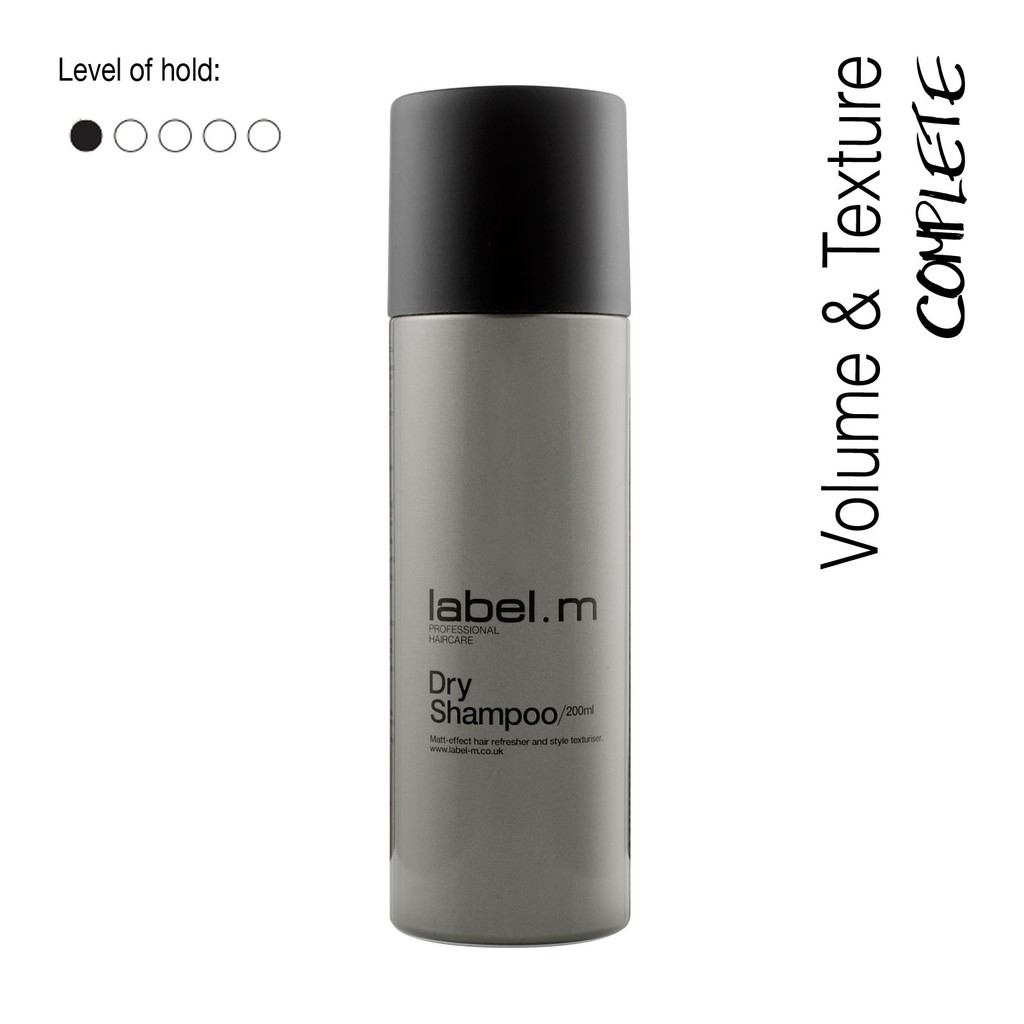 Shake can well and hold upright, approximately 10-15cm from dry hair. Apply evenly over hair, taking care to protect eyes and clothing or fabrics from spray. Product Details. Volume: 200ml. Brand: label.m. Description. The time saving label.m Dry Shampoo refreshes between shampoos to disperse oil and product overload.