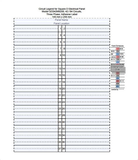 Free Single Phase and 3 Phase Electrical Panel Directories. Label : none 101 mm 4" 78 mm 3 1 / 16 " 0 mm 0" 0 mm 0" 0 mm 0" 0 mm 0" download.pdf: FPE... Square D : QOC32U125C 32/64 : Label : none 70 mm 2 1 / 4 " 326 mm 12 13 / 16 " 0 mm 0" 9 mm Fill breaker panel labels. Fill electrical panel label template excel edit online. It is possible to use the panel schedule template square d intended for simplicity of usage. There is usually certainly an excellent selection of opensource label templates you may download and use. Circuit breaker panel label template freeware. Using square d panel schedule template excel for Excel worksheets can assist boost effectiveness in your organization. When you make use of an square d panel schedule template excel , you can make as well as customize your custom-made analysis in mins. You can share as well as release your personalized analysis with others within your firm. Square D,LOAD CENTER QO+HOM DIRECTORY LABEL 1/42,Directory label,For load center covers,Homeline,Numbered 1 through 42 GTIN: 00785901739432. Height: 0.1000 Height Unit: IN Item Status: J Length: 9.5000 Length UOM: IN Mfr. # LSDL Ships Freight: No: Ships Ground. Eligible for expedited shipping: Yes: Special Features: NUMBERED 1 THROUGH 42 Sub.