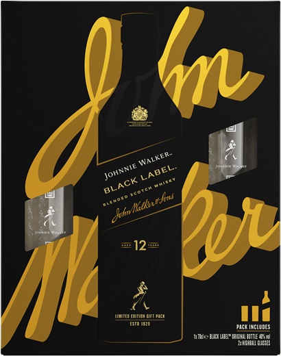 Johnnie Walker Black Label 12 Years Old Blended Scotch Whisky 70cl With Gift Box Including Two Tumblers