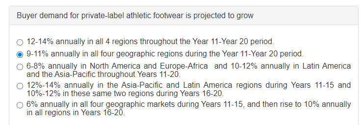 produce footwear sold under the private-label brands of large chain retailers. In Year 10 the company sold 4,500,000 million pairs of branded shoes to retailers and individuals, and it bid successfully for contracts to supply 740,000 pairs of private label shoes to large multi-outlet retailers of athletic footwear.