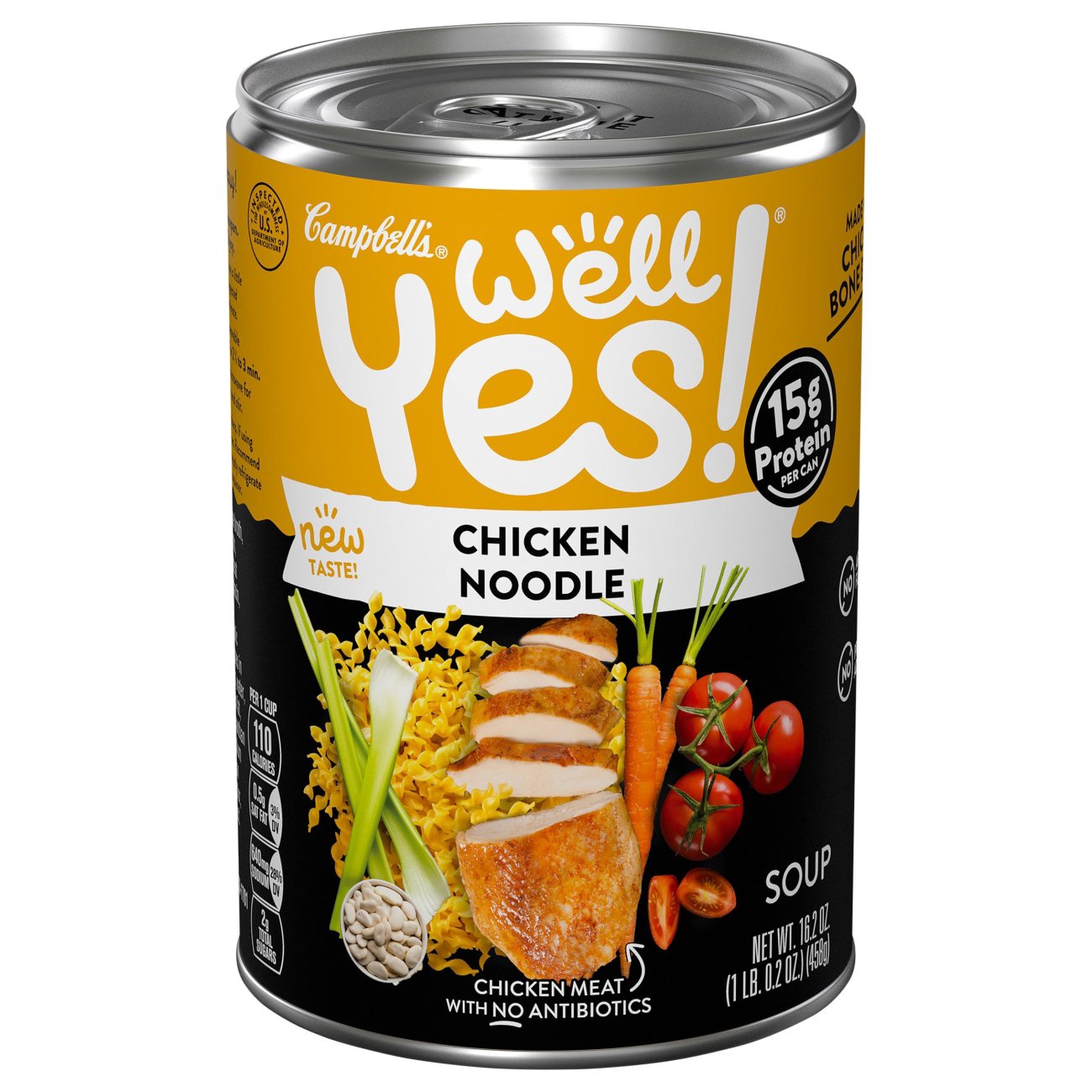Crafted with the delicious, low-fat combination of comforting chicken broth, enriched noodles and chicken meat with no antibiotics, our soup is satisfying and it's low in cholesterol too! Where to Buy. Nutrition Facts & Ingredients. Nutrition Facts. About 2.5 Servings Per Container. Serving size. 1/2 Cup (120mL) Condensed Soup. Amount per serving. Campbell's® Well Yes!® Chicken Noodle Soup is a different take on a classic. Made with chicken meat with no antibiotics, egg noodles, carrots, celery and white beans, this Chicken Noodle Soup is packed with 15 grams of protein per can and is a good source of protein and vitamin A*. A bowl of our Roasted Chicken Noodle Soup, served with fresh-baked bread, is hearty enough to serve on its own, or you can premium-ize it with whatever's fresh in your kitchen. This frozen soup has a storage life of 638 days in your freezer and yields approximately 384 fluid ounces of hearty soup. Campbell S Chicken Noodle Soup Food Label Templates And Examples This soup can label template is designed in best way using computer software and best design tools. Campbell soup label template. Soup can labels printable free via. Tamra 3 years ago. I39m looking for a template for a campbell39s soup label or a printable label that i could edit.