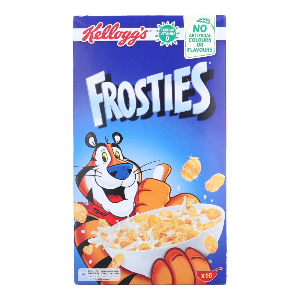 Kellogg's Frosted Flakes® gives you the sweet spark to go all in. Help get your family fueled up for a great day with Kellogg's Frosted Flakes® Cereal. Oven-toasted crunchy corn flakes are perfectly glazed with a sweet frosting. Fortified cereal with 8 essential vitamins and minerals, no cholesterol and 0 grams of fat, they're gr-r-reat! ®.