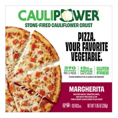 California Pizza Kitchen Four Cheese Pizza w/ Crispy Thin Crust Frozen. 1 ⁄ 3 pizza (127g) Nutrition Facts. 320 calories. Log food. Open Nature Roasted Vegetable Pizza w/ Cauliflower Crust Frozen. 0.5 pizza (153g) Nutrition Facts. 330 calories.