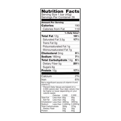 Nature valley protein bar nutrition label