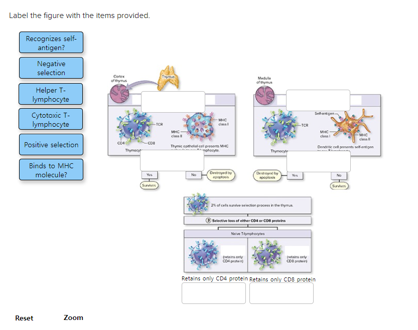 Label the figure with the items provided. T/F: A normal, healthy cell only displays self-antigens with the MHC class I molecules. True. Alveolar Cells Classify the items with the appropriate cell type. T/F: interferon may induce the degradation of viral RNA or DNA and inhibits the synthesis of viral proteins.
