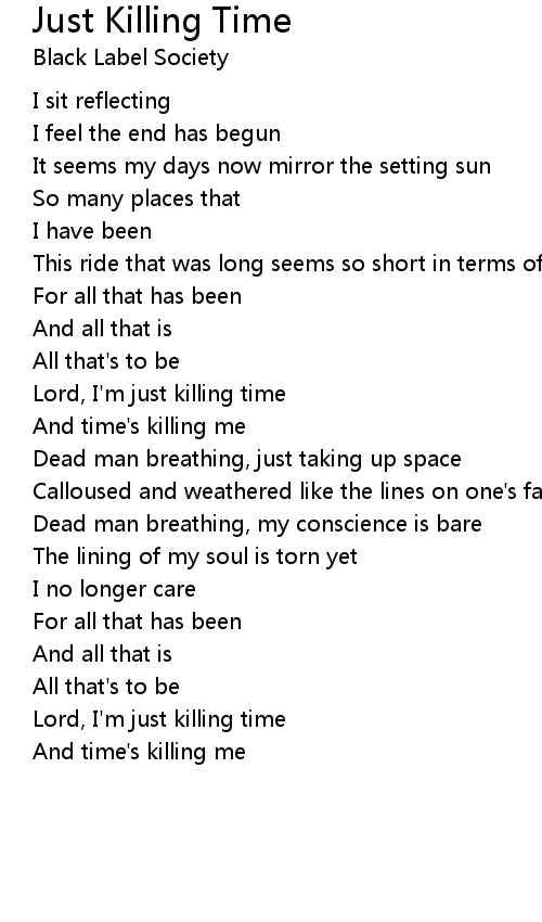 Just Killing Time Black Label Society. ... I'm just killing time Time's killing me Dead man breathing Just taking up space Calloused and weathered Like the lines on one's face Dead man breathing ...