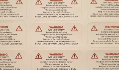 Wax melt warning label
