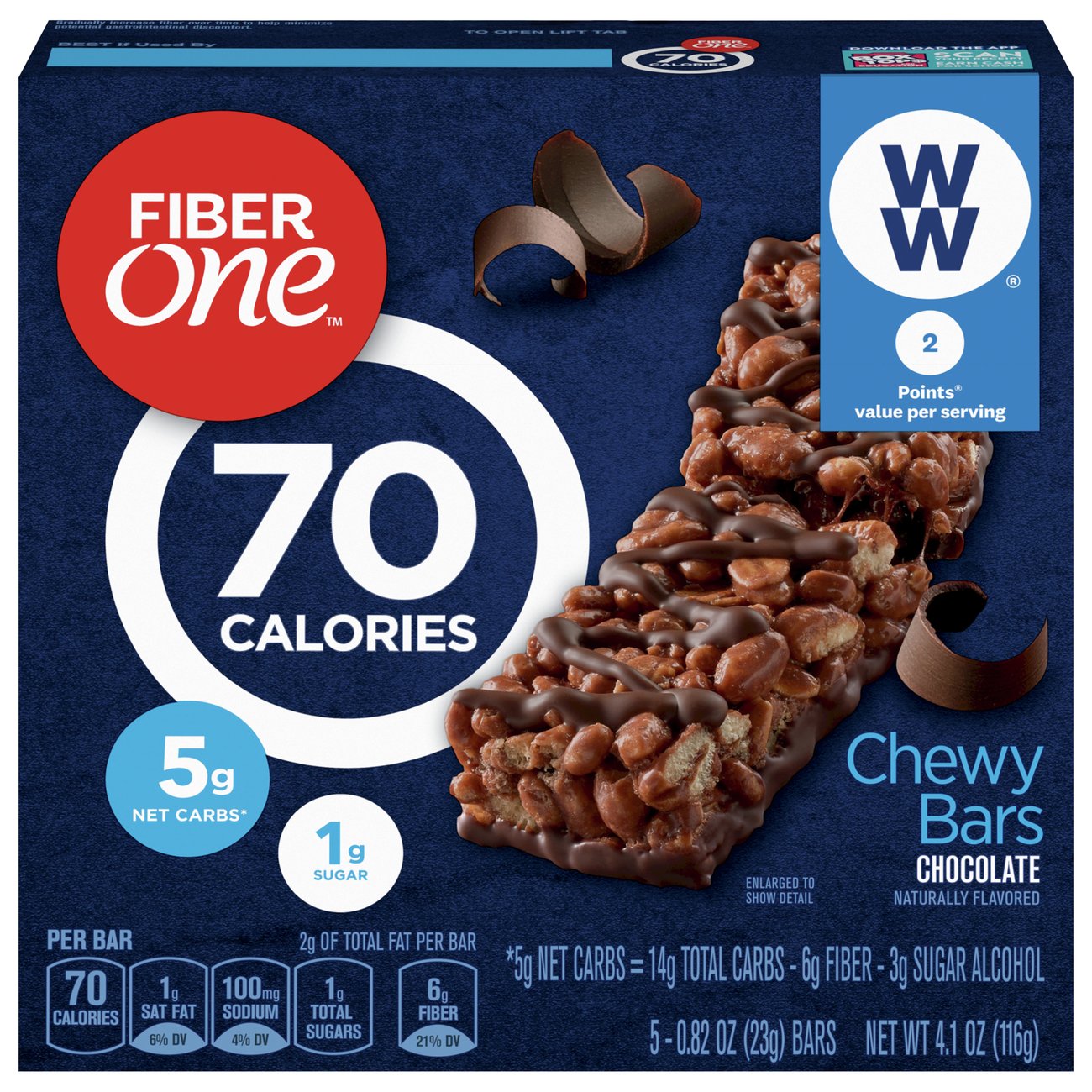 Fiber One Chewy Bars, Oats and Chocolate, 15g Fiber, 21.2 oz, 15 ct 6,098 $6.31 $ 6 . 31 ($0.42/Count) Fiber One 70 Calorie Chocolate Fudge Brownie, 48 Count (Pack of 4) (12 Each) 1,063
