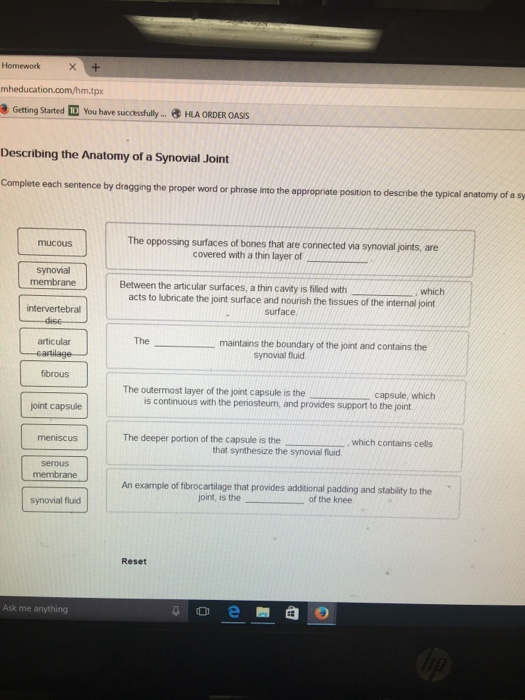 Complete each sentence by dragging the proper word or phrase into the appropriate position. Then place eech sentence in the correct order beginning with the one furthest from the medullary cavity. 1. Mineralization of the cartilaginous walls between lacunae provides a temporary framework in the zone of calcification in which the final stages of ossification … As their genetic counselor, you can calculate the probability that they are carriers and that their child will be affected with the condition. Complete each statement by dragging the correct label to the appropriate location. Labels can be used once, more than once, or not at all. Complete each sentence by dragging the proper label into the correct position. Divides the body into anterior and posterior sections. Then rearrange the sentences so. Click and drag each label to identify the plane it describes. The highest pressure exerted on the arterial walls during the heart cycle is referred to as systolic blood pressure. Complete each sentence by dragging the proper label into the appropriate position. Word in () is the answer -Three main vessels make up the (hepatic triad). These include the hepatic portal vein, hepatic artery, and bile ductules.