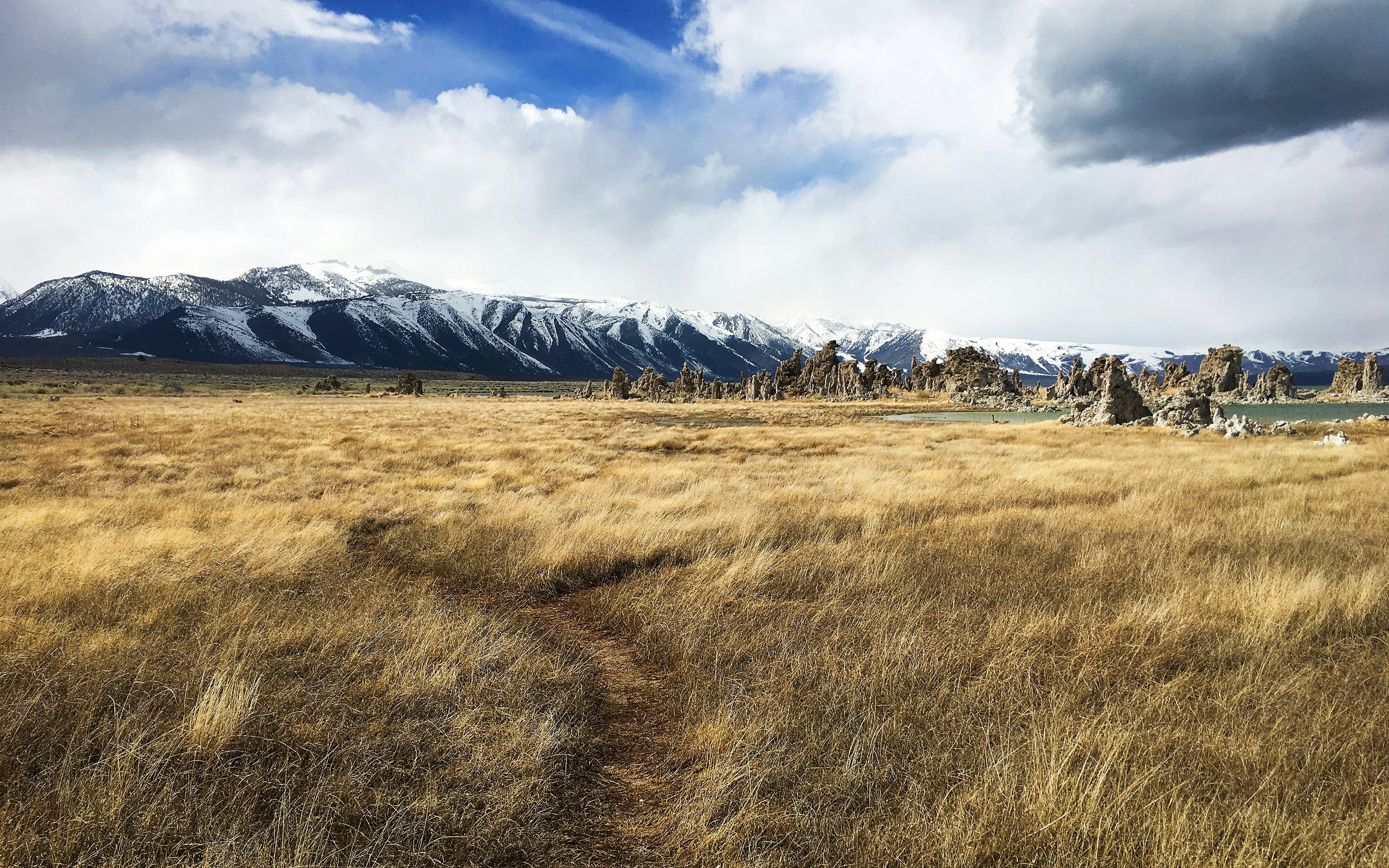 The Sierra Nevada mountain range dominates the landscape between California and Nevada. On the eastern side of the range, youâll find Mono Lake. This is a large, shallow soda lake thatâs saltier than the ocean. Each year Mono Lake serves as an important resting stop for millions of migratory birds.