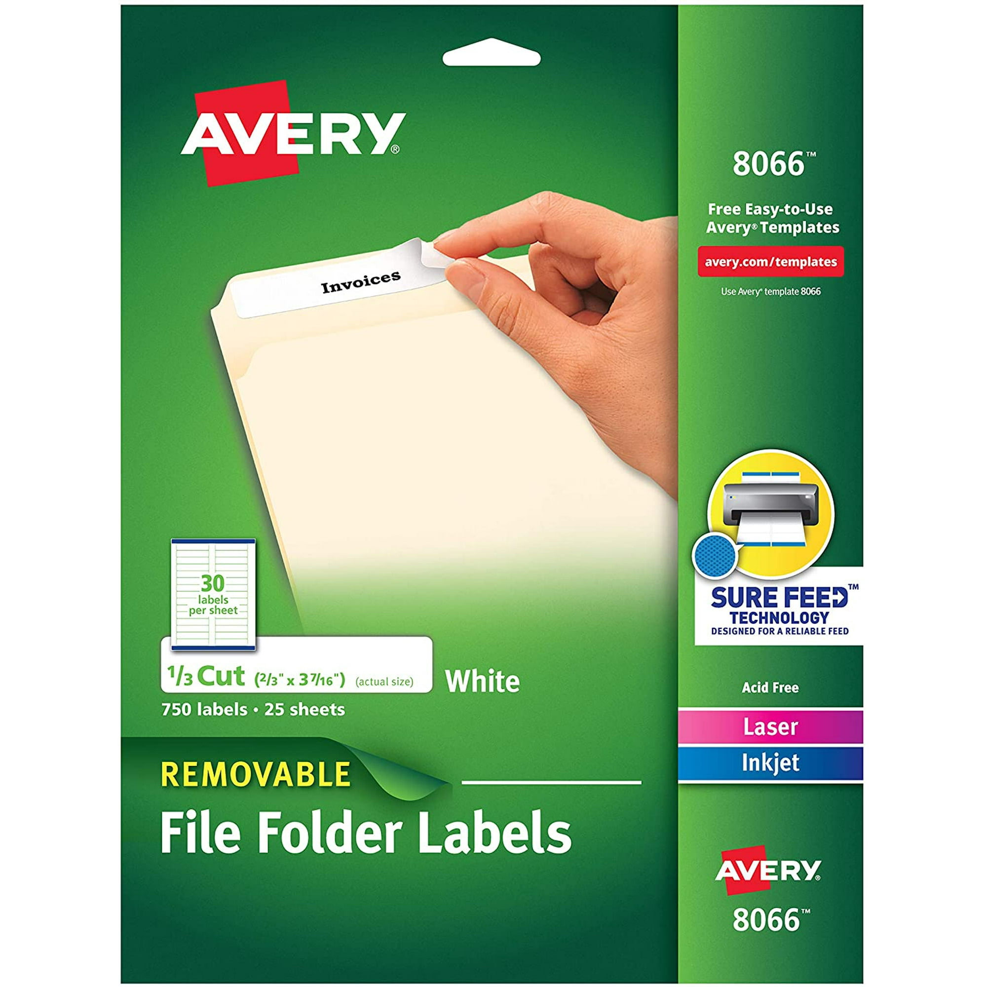 Avery Removable Inkjet File Folder Labels, 2/3" x 3 7/16 ... Shop Staples for Avery Removable Inkjet File Folder Labels, 2/3" x 3 7/16", White, 750 Labels Per Pack (8066) and enjoy fast and free shipping on qualifying orders. File Folder Labels with Sure Feed™, 2/3” x 3-7/16 ... - Avery Easily change and update your file folders with Avery Removable File Folder Labels (8066). These printable 2/3” x 3-7/16” white labels feature removable ...