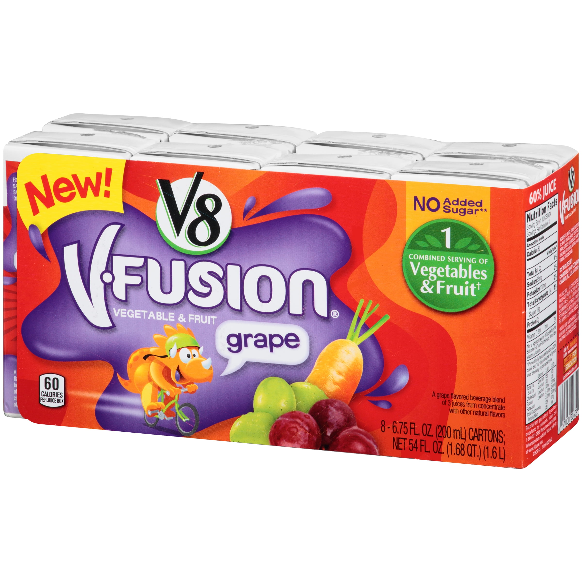 V8 v. fusion juices Nutrition Facts - Eat This Much Calories, carbs, fat, protein, fiber, cholesterol, and more for V8 v. fusion juices ( Campbell soup company, acai berry). Want to use it in a meal plan?