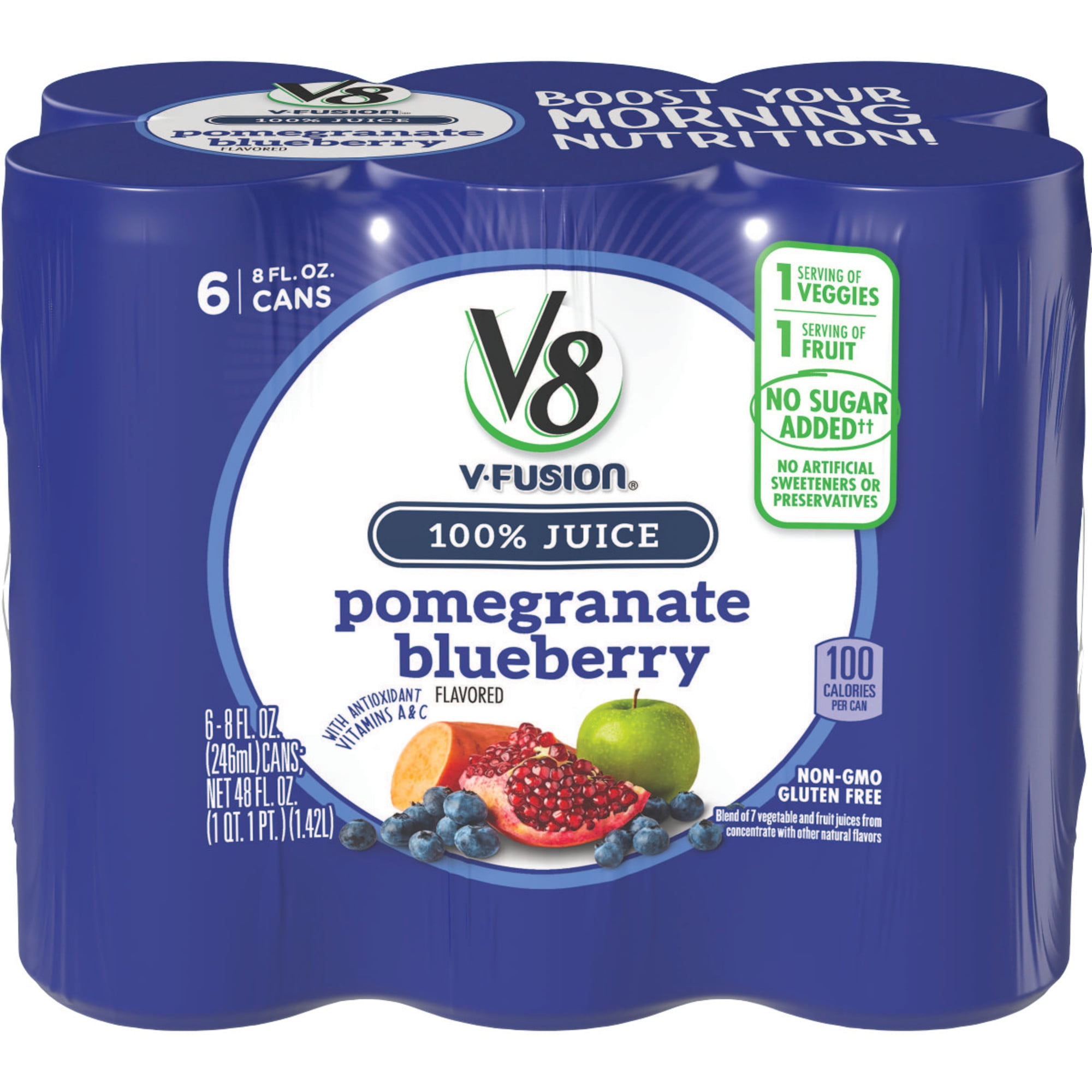 Is V8 Fusion REALLY Healthy? (The Ugly Truth) | Vibrant ... There are 160 calories in 12 ounces of V8 Fusion. That's not too bad, right? Wrong. In that 160 calories you're getting 0 potassium and 0 fiber, but 105 mg of sodium and 40 grams of carbohydrates. They list sugars as 35 grams. It gets worse. Pomegranate Blueberry - V8® Fruit and Vegetable Juices V8 Fruit & Vegetable Blends Light Peach Mango Flavor is made from the juices of sweet potato, carrot, apple, peach and mango. *Regular V8 Fruit & Vegetable Blends contain 100 calories and 23 grams of sugar per 8 fl. oz.
