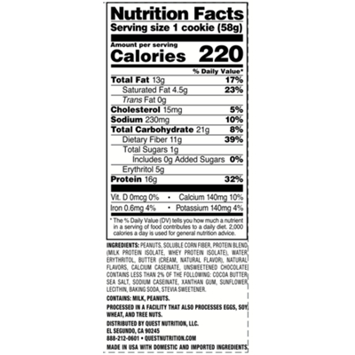 Solved According to the Nutrition Facts Label, 1 serving ... According to the Nutrition Facts Label, 1 serving of chocolate chip cookies has 320 kcal and 22 g of added sugar.
