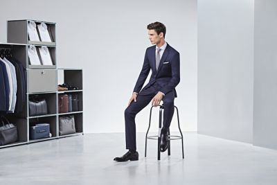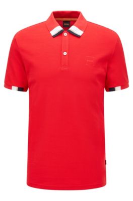 Hugo boss Regular-fit bomber jacket with red logo label ... An everyday bomber jacket cut to a regular fit by HUGO Menswear. Crafted in soft fabric with a water-repellent finish, this jacket features HUGO branding at the inner placket and a red logo label at the back yoke. Tonal ribbing adds a clean touch to this must-have piece. HUGO - Double-breasted slim-fit suit with red logo label A creatively styled suit with a double-breasted jacket, by HUGO Menswear. Patterned with a colourful pinstripe and cut to a streamlined fit, this suit is designed in brushed virgin wool with stretch for comfort in movement. The left pocket of the jacket is trimmed with a red logo label, while pop-colour lining adds an unexpected touch inside.