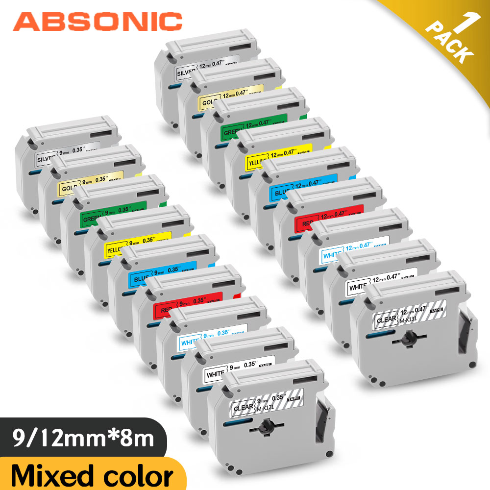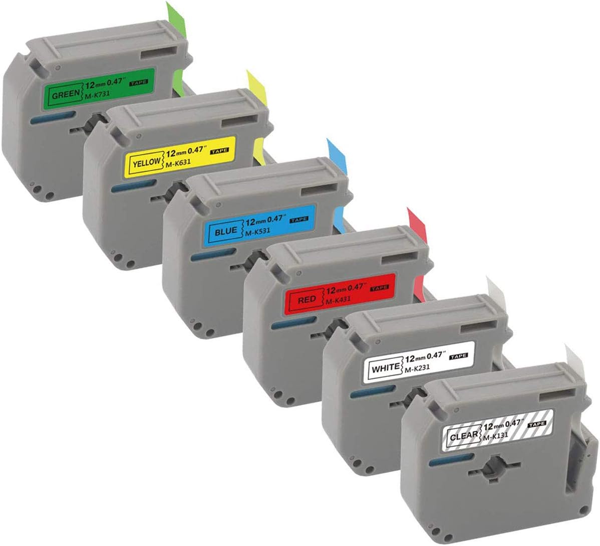 Anycolor Compatible Label Tape Replacement for Brother P Touch M Tape 12mm 0.47 Inch (White/Clear/Red/Yellow/Blue/Green) for P Touch PT-M95 PT-90 PT70 ...
