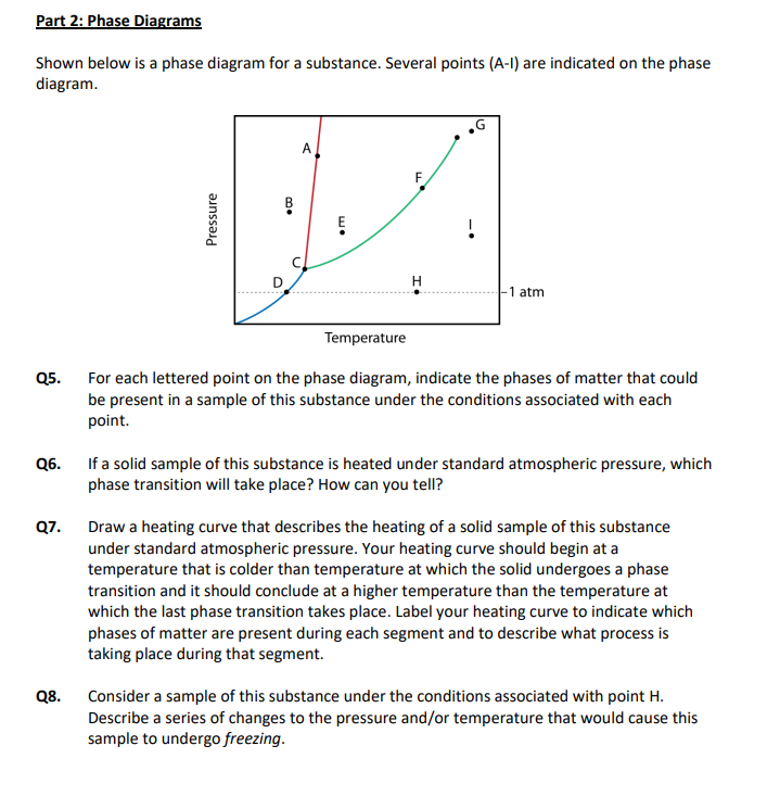 Iron-Carbon Phase Diagram Explained [with Graphs] This iron carbon phase diagram is plotted with the carbon concentrations by weight on the X-axis and the temperature scale on the Y-axis. The carbon in iron is an interstitial impurity. The alloy may form a face centred cubic (FCC) lattice or a body centred cubic (BCC) lattice. It will form a solid solution with α, γ, and δ phases of iron. Phase Diagrams | Chemistry: Atoms First - Lumen Learning Graphite is the most stable phase of carbon at normal conditions. On the phase diagram, label the graphite phase. If graphite at normal conditions is heated to 2500 K while the pressure is increased to 10 5 atm, it is converted into diamond. Label the diamond phase. Circle each triple point on the phase diagram. PDF Phase Diagrams Phase changes occurring when temperature is increased (moving left to right on the phase diagram) require energy. No methods exist to predict where these boundaries are for any given compound, so they must be determined experimentally. In addition, two important points exist on the diagram: the triple point and the critical point. 32 Label The Phase Changes Shown In The Diagram Below ... What borderline in a phase diagram will have the s. Label the axes phases phase changes and important points on the phase diagram below vaporization solid gas triple point liquid condensation critical point freezing melting volume sublimation temperature deposition pressure reset zoom references. Label the phase changes shown in the diagram below.