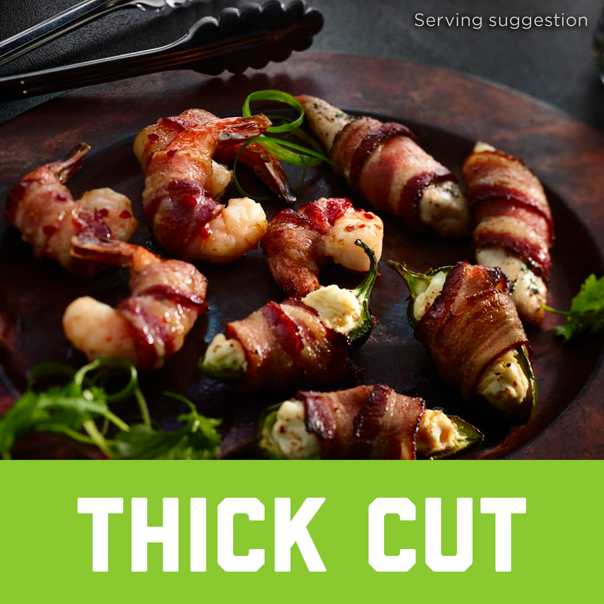 Hormel Black Label Thick Cut Bacon Slices - 16oz : Target This HORMEL BLACK LABEL bacon has the same great taste as the original cut, but it's cut thicker - a LOT thicker - which means it's perfect for turning into bacon bits, chopping up for a salad, or draping over a steak. If you're looking for savory bacon that never falls apart but cuts like a dream, look no further.