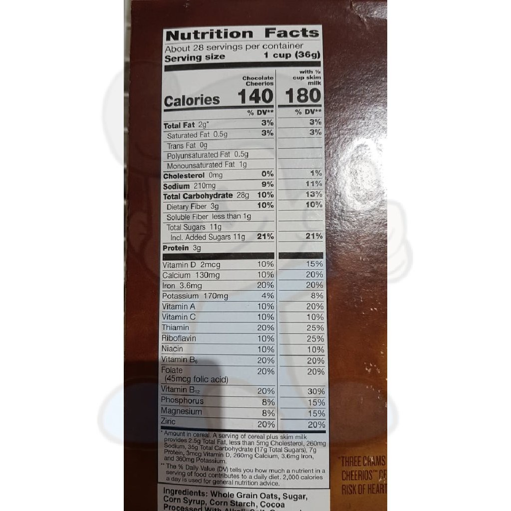 Chocolate cheerios nutrition label