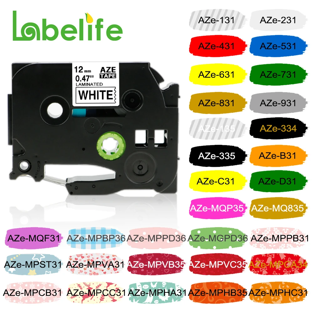 31 Colors 221 231 241 Compatible for Brother P-touch Label Printers Label Tape 12mm 231 631 131 for ptd210 pth110 Label Machine