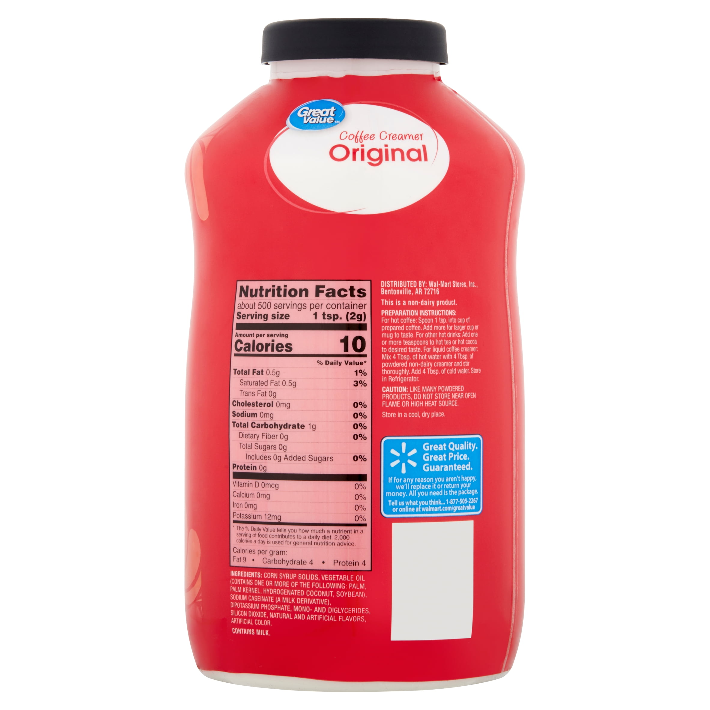 Nutrition Facts for Coffee Mate Original Powdered Creamer ... View calories, net carbs, added sugars, sodium, protein, total carbohydrates, fats, vitamins, minerals, and more!