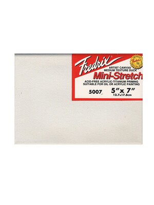 Fredrix Red Label Stretched Cotton Canvas 5 in. x 7 in. each... Fredrix Red Label Canvas features the finest quality pure cotton duck, medium textured canvas. It is double-primed with acid-free acrylic gesso for use with oil or acrylic painting. The canvas is stapled onto the back of standard stretcher bars. Paint on all four edges and hang it with or without a frame.