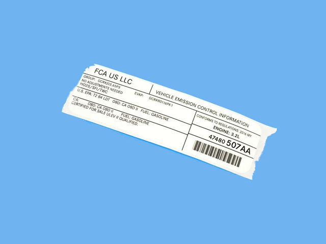 Genuine Vehicle Emission Control Information Label ... Genuine Vehicle Emission Control Information Label 68366297AA. $11.69. Free shipping Free shipping Free shipping. Genuine Vehicle Emission Control Information Label 47480523AB. ... Direct Replacement. Parts Included: ONLY PART REFERENCE #7 ON THE DIAGRAM IS INCLUDED. mopar4all. mopar4all . 95.2%. Visit Store: mopar4all.